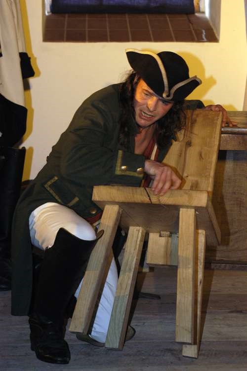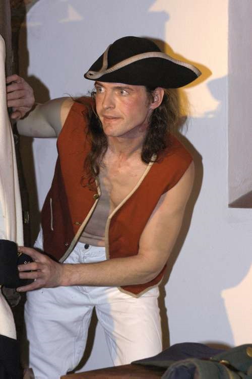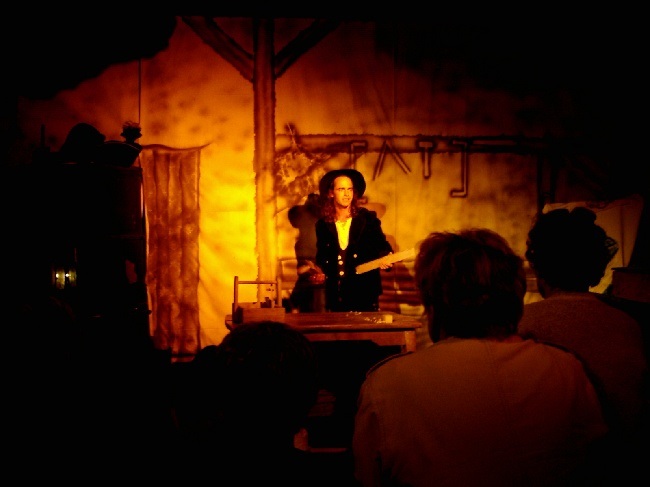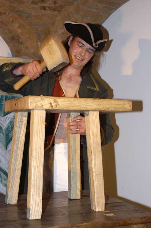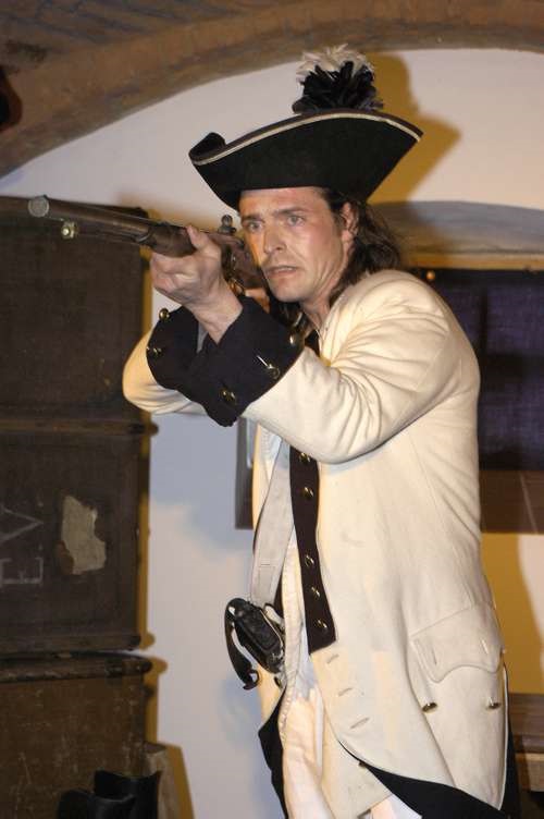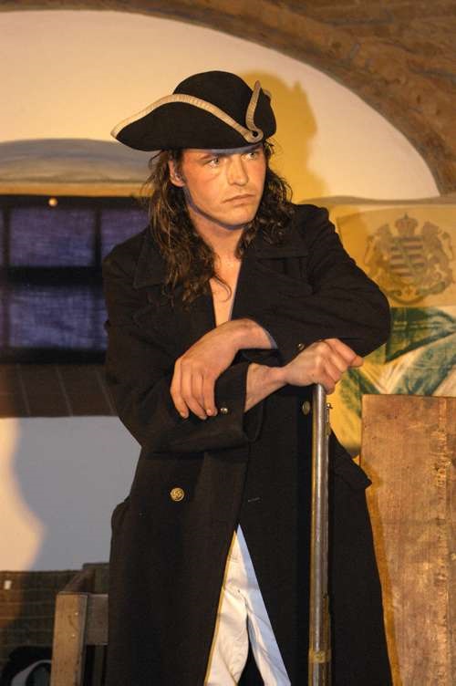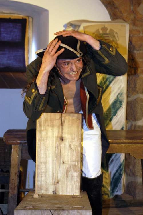 Hier finden sich einige Szenenfotos aus dem aktuellen Theaterstück über das Leben des Räuberhauptmann Karasek. Der Name des Stücks lautet: "Die unglaublich wahre Geschichte des Räuberhauptmann Karasek, wie sein Leben und seine Tahten in den Gerichtsakten gefunden worden, ausgewählet dem geneigten Publikum zur Erbarmung und Belehrung mit allerlei Spiel und Melodien in zarter Empfindung vorgetragen von ihm selbst."