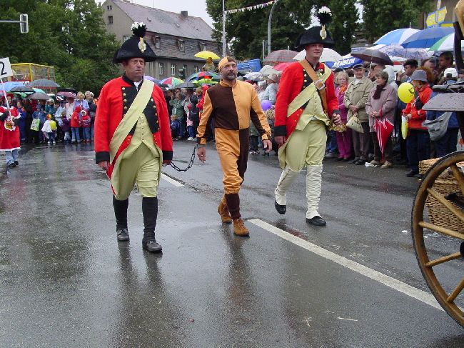 Zum Tag der Sachsen 2001 war der Leutersdorfer Verein "Karasek und die Dörfler" und natürlich Karasek Sven Heine selbst präsent. Aber auch ganz andere Typen waren hoch zu Roß unterwegs...