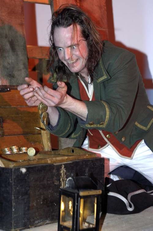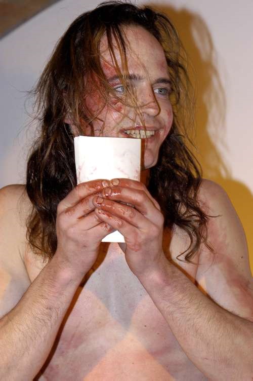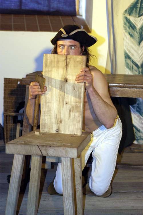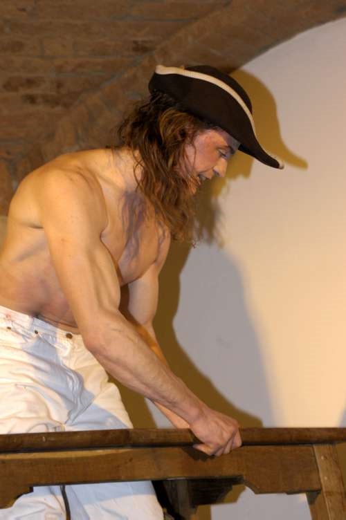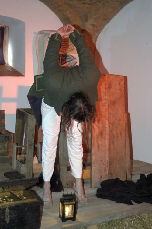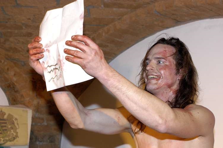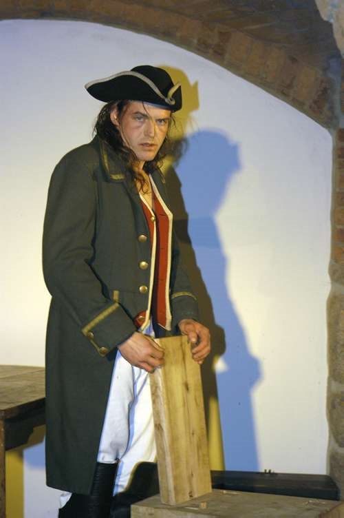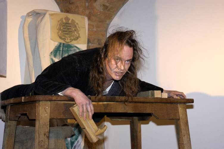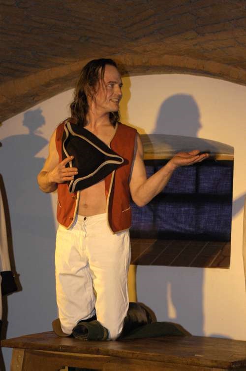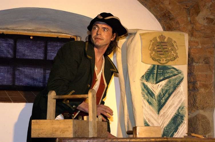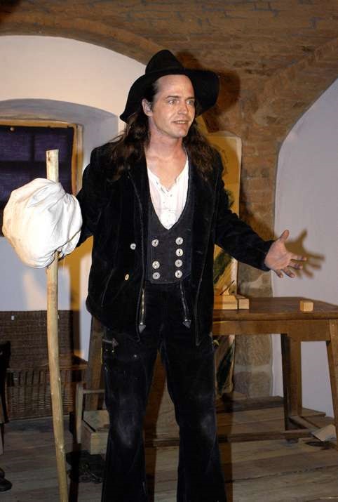 Hier finden sich einige Szenenfotos aus dem aktuellen Theaterstück über das Leben des Räuberhauptmann Karasek. Der Name des Stücks lautet: "Die unglaublich wahre Geschichte des Räuberhauptmann Karasek, wie sein Leben und seine Tahten in den Gerichtsakten gefunden worden, ausgewählet dem geneigten Publikum zur Erbarmung und Belehrung mit allerlei Spiel und Melodien in zarter Empfindung vorgetragen von ihm selbst."