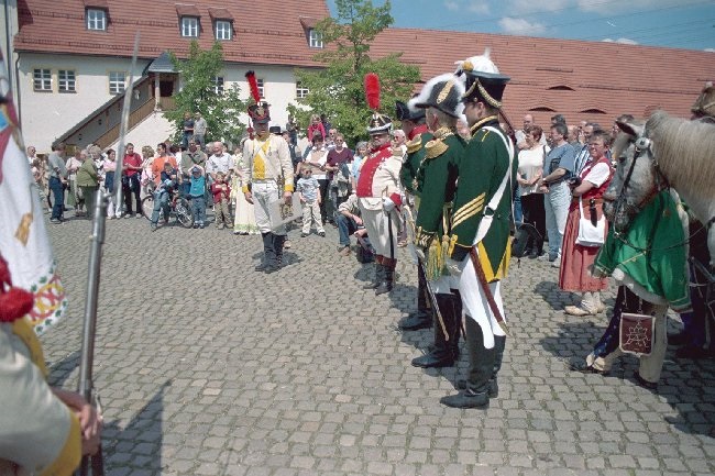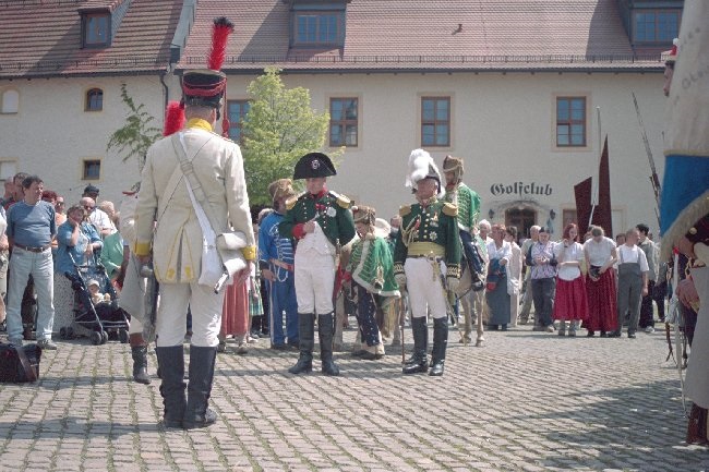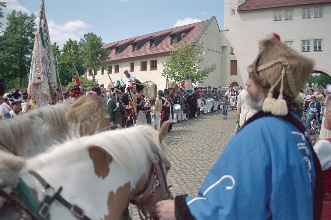 Zum Tag der Sachsen 2001 war der Leutersdorfer Verein "Karasek und die Dörfler" und natürlich Karasek Sven Heine selbst präsent. Aber auch ganz andere Typen waren hoch zu Roß unterwegs...